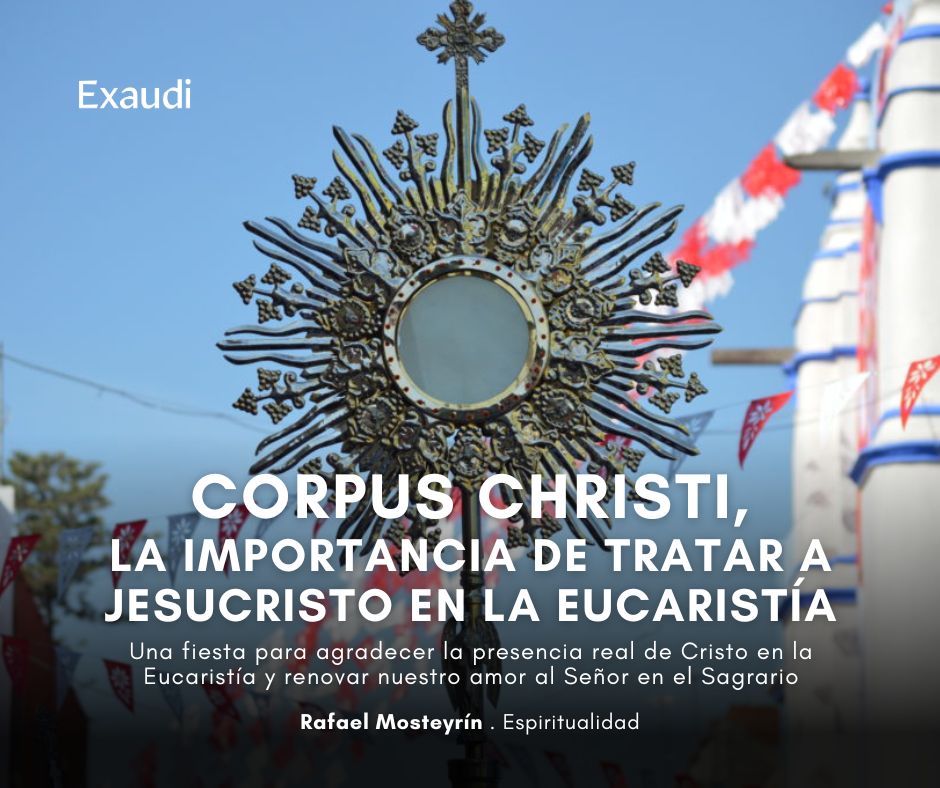 El sacerdote Rafael de Mosteyrín ofrece a los lectores de Exaudi este artículo sobre la fiesta del Corpus Christi y la importancia de tratar a Jesucristo en la Eucaristía.