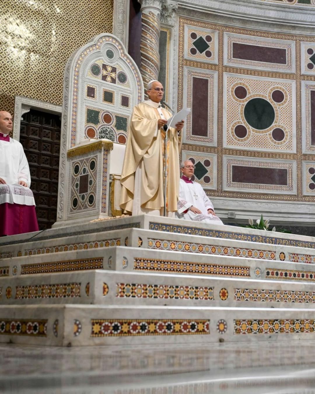 Finalmente, quisiera mencionar un aspecto esencial de la misión de una catedral: la liturgia. Es la «cumbre a la cual tiende la actividad de la Iglesia y […] la fuente de donde mana toda su fuerza» (Const. dogm. Sacrosanctum concilium, 10). En ella encontramos todos los temas que hemos mencionado: estamos edificados como templo de Dios, como su morada en el Espíritu, y recibimos fuerza para predicar a Cristo en el mundo (cf. ibíd., 2). El cuidado de la liturgia, en el lugar de la Sede de Pedro, debe ser por tanto, en modo tal que pueda proponerse como ejemplo para todo el pueblo de Dios, respetando las normas, prestando atención a las diferentes sensibilidades de quienes participan, según el principio de una sabia inculturación (cf. ibíd., 37-38) y al mismo tiempo en la fidelidad a ese estilo de solemne sobriedad típico de la tradición romana, que tanto bien puede hacer a las almas de quienes participan activamente (cf. ibíd., 14). Debe prestarse suma atención para que aquí la sencilla belleza de los ritos pueda expresar el valor del culto para el crecimiento armonioso de todo el Cuerpo del Señor. San Agustín decía que la “belleza no es otra cosa que amor, y el amor es vida” (cf. Sermón 365, 1). La liturgia es un ámbito en el que esta verdad se realiza de manera eminente; y deseo que quien se acerque al altar de la catedral de Roma pueda salir lleno de esa gracia con la que el Señor desea inundar el mundo (cf. Ez 47,1-2.8-9.12).