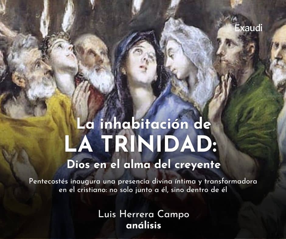 Pentecostés da un paso más: Dios ya no está solamente con los apóstoles, sino dentro de ellos. Es la inhabitación trinitaria: el Padre, el Hijo y el Espíritu Santo hacen morada en el alma creyente. Pero esta presencia no es automática: exige relación, correspondencia. Dios ama primero, llama, entra… pero espera ser reconocido, acogido, amado.