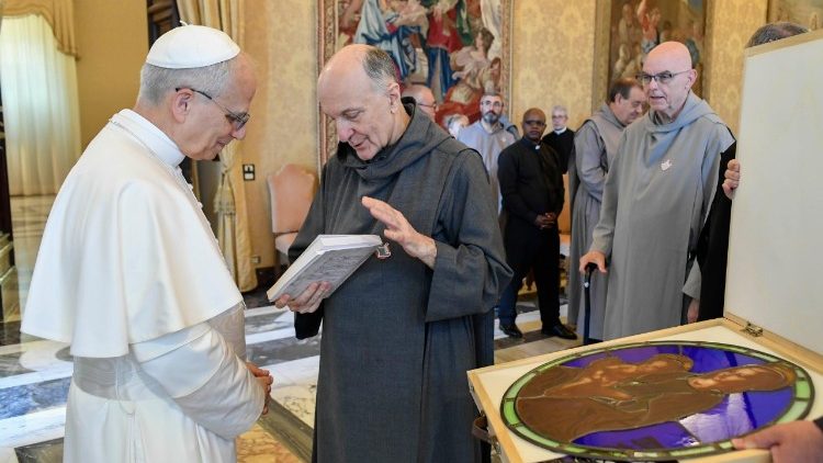 Saludo a los Superiores Generales presentes, especialmente a quienes acaban de ser elegidos, a los miembros de los órganos de gobierno y a todos vosotros, pertenecientes al Tercer Orden Regular de San Francisco — ¿quién es el nuevo General? ¿Ya reelegido?… Ah, no todavía, bien — luego a la Sociedad de las Misiones Africanas y al Instituto de los Servos del Paráclito.
