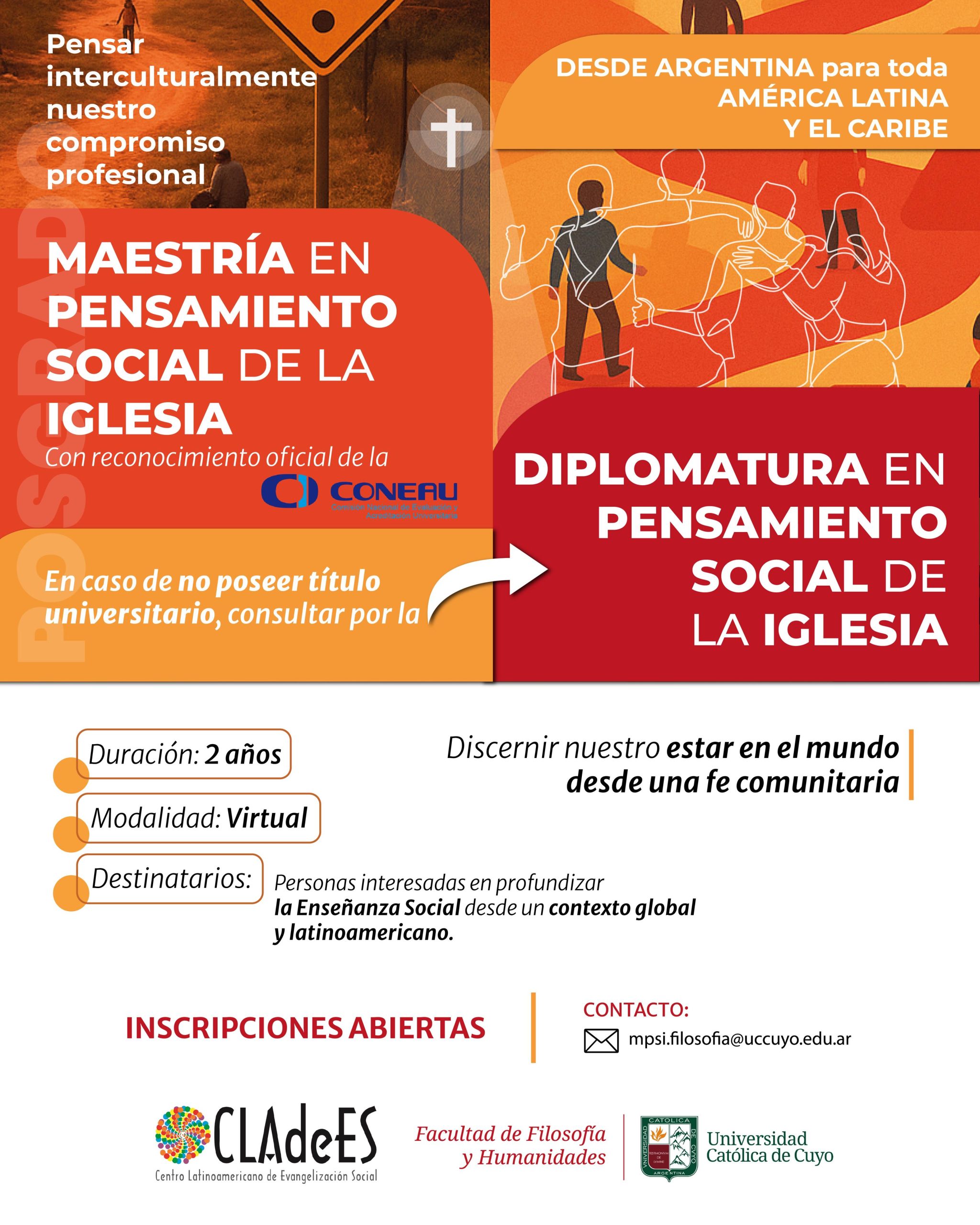 Atendiendo esta llamado, desde CLAdeES, el Centro Latinoamericano de Evangelización Social, hemos emprendido la tarea de formar. Desde y para América Latina, hemos preparado un Máster y una Diplomatura en Pensamiento Social de la Iglesia. Aunque los trayectos se parecen, uno se inscribe en los estudios universitarios de Posgrado (es decir, que requieren contar con título de Grado) y el otro, es un título de Pregrado, de manera que quien tenga un título secundario o de escuela media, está habilitado para cursar. El ámbito donde se imparten ambos cursos a distancia es la Universidad Católica de Cuyo, en Argentina. Justamente allí ambas carreras han sido aprobadas por el Ministerio de Educación de la Nación y por la CONEAU, entidad que respalda con su aprobación la calidad de los estudios superiores. Quienes estén interesados podrán recabar más información en nuestra página web: Cladees.org y también obtener allí más datos de contacto.