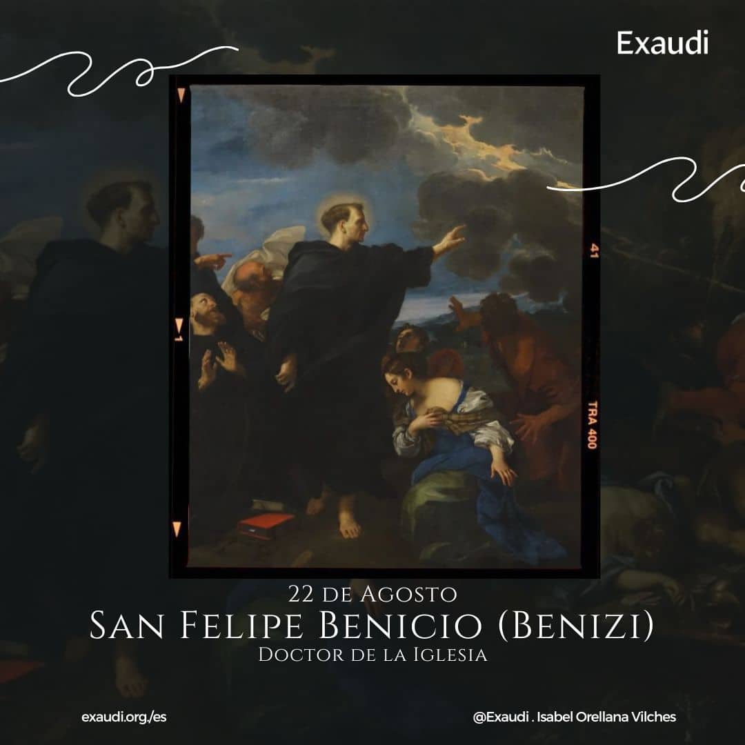 Hoy festividad de Santa María Virgen Reina se celebra la vida de este santo que procedía de la ilustre familia de los Benizi, de Florencia, donde nació el 15 de agosto de 1233. Ese día se fundó la Orden de los Servitas, un hecho providente que involucraría en su momento a Felipe. Fue hijo único, y muy deseado durante años. De su formación se ocupó un preceptor, y después cursó estudios en París y en Padua. Y aquí puede que se hubiera doctorado en medicina y filosofía a los 19 años, si bien la doble graduación académica es un dato que precisa ser corroborado. Inclinado a la vida espiritual asiduamente visitaba la iglesia de la Annunziata, regida por los servitas, ubicada en el barrio florentino de Cafaggio.