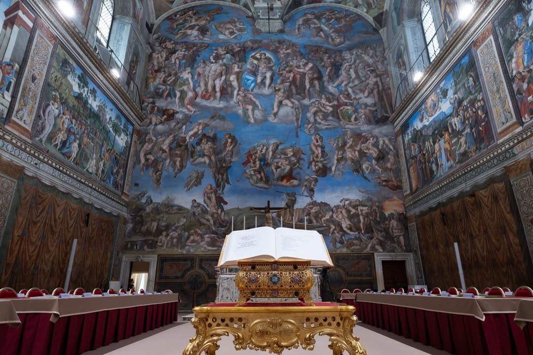 Condividiamo immagini e video forniti da Vatican Media della Cappella Sistina e della Sala delle Lacrime.