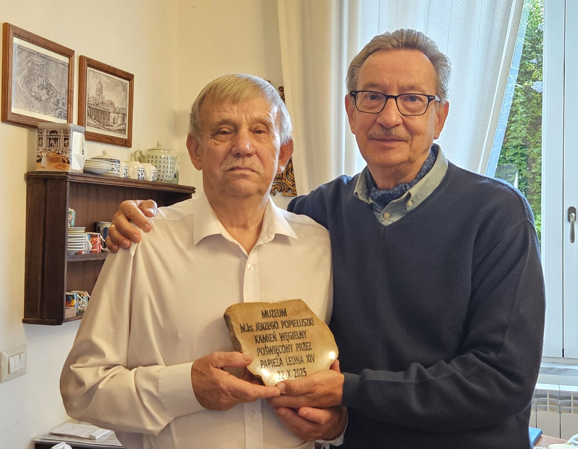 Quest’anno, in occasione di un altro anniversario della scomparsa e del martirio di don Jerzy Popieluszko, il 19 ottobre, la sua famiglia si è recata a Roma per incontrare Leone XIV. Lo scopo del viaggio era quello di offrire al Papa le reliquie del martire e di chiedere la benedizione della prima pietra del Museo commemorativo di don Jerzy, in costruzione a Okopy, villaggio natale della famiglia Popieluszko. Erano presenti oltre al fratello del beato, Józef Popieluszko e ai suoi due nipoti Marek (figlio di Józef) e Jerzy (figlio di Stanisław), l’arcivescovo di Białystok, mons. Józef Guzdek con i sacerdoti dell’arcidiocesi, il presidente del voivodato di Podlachia (in polacco Podlasie) Łukasz Prokorym con i membri del consiglio del voivodato, i membri della Fondazione intitolata a don Jerzy Popiełuszko “Dobro” (Bene) (https://www.fundacjapopieluszko.pl/en/) – Bogdan Romaniuk e Michał Matyskiel, sindaco di Suchowola, e rappresentanti del Museo Podlasie, che supervisionerà il Museo di Okopy. Erano presenti anche Eliza Pardyka, presidente del Consiglio dei Giovani della Fondazione “Dobro”, e Przemysław Wrężlewicz della casa editrice Rafael.