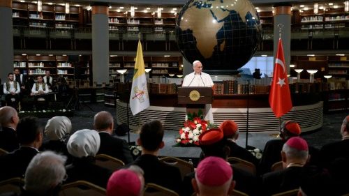 Giustizia e misericordia sfidano la legge della forza e osano chiedere che la compassione e la solidarietà siano considerate criteri di sviluppo. Per questo, in una società come quella turca, dove la religione ha un ruolo visibile, è fondamentale onorare la dignità e la libertà di tutti i figli di Dio: uomini e donne, connazionali e stranieri, poveri e ricchi. Tutti siamo figli di Dio e questo ha conseguenze personali, sociali e politiche. Chi ha un cuore docile al volere di Dio promuoverà sempre il bene comune e il rispetto per tutti. Oggi questa è una grande sfida, che deve rimodellare le politiche locali e le relazioni internazionali, specialmente davanti a un’evoluzione tecnologica che potrebbe altrimenti accentuare le ingiustizie, invece di contribuire a dissolverle. Persino le intelligenze artificiali, infatti, riproducono le nostre preferenze e accelerano i processi che, a ben vedere, non sono le macchine, ma è l’umanità ad avere intrapreso. Lavoriamo dunque insieme, per modificare la traiettoria dello sviluppo e per riparare i danni già inferti all’unità della famiglia umana.