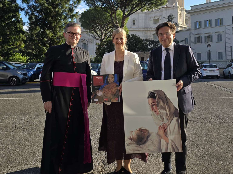 As explained by the project’s creator, Dariusz Karlowicz, president of the St. Nicholas Foundation, from the outset, it was envisioned that this first initiative would be only the beginning of other future activities. Indeed, in subsequent years, the organizers invited the artists to address other themes of the Christian faith, specifically the mysteries of the Rosary. Therefore, after dialogue with theologians, biblical scholars, art historians, and philosophers, the painters depicted the joyful mysteries: “The Annunciation” and, more recently, “The Visitation.” The paintings narrating Mary’s visitation to Elizabeth are already on display in the halls of the Museums of San Salvatore in Lauro. The exhibition is part of the program of events for the 2025 Jubilee Year and is sponsored by the Vatican Dicasteries for Evangelization and for Culture and Education. A special presentation ceremony will take place on October 9 at 6:30 p.m. The co-organizer of the exhibition currently underway in Rome is the John Paul II Vatican Foundation.